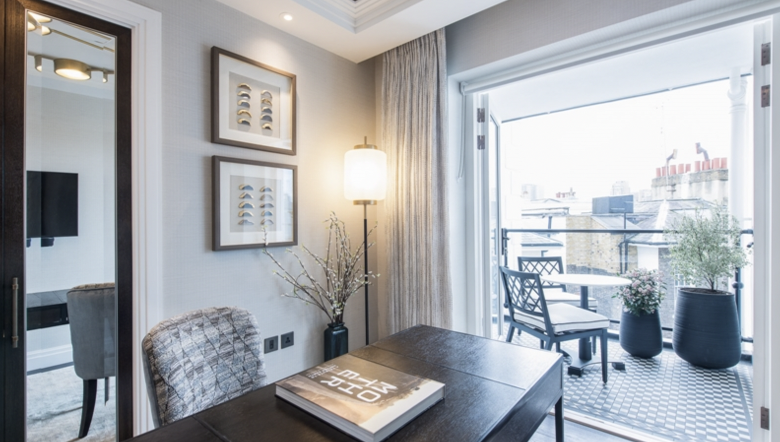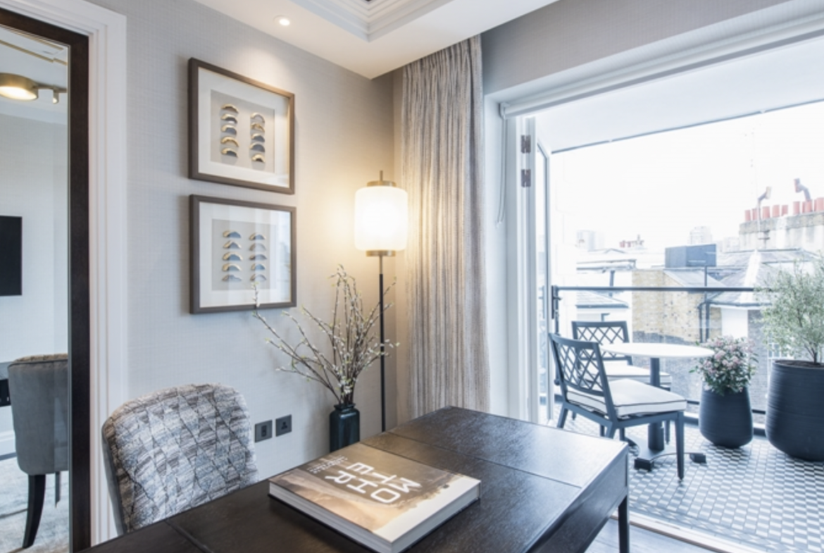 This elegant apartment offers impressive entertaining spaces and comprises a grand reception room, master bedroom with; an ensuite, walk-in closet, and private balcony via French doors, a guest bedroom with an ensuite bathroom, a fully integrated kitchen that leads onto a private balcony, and a guest powder room.