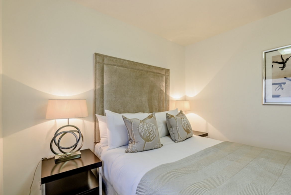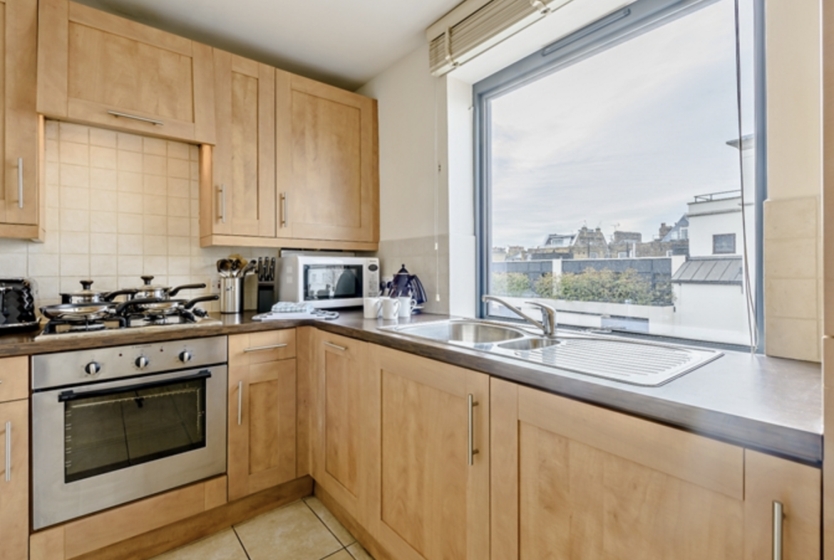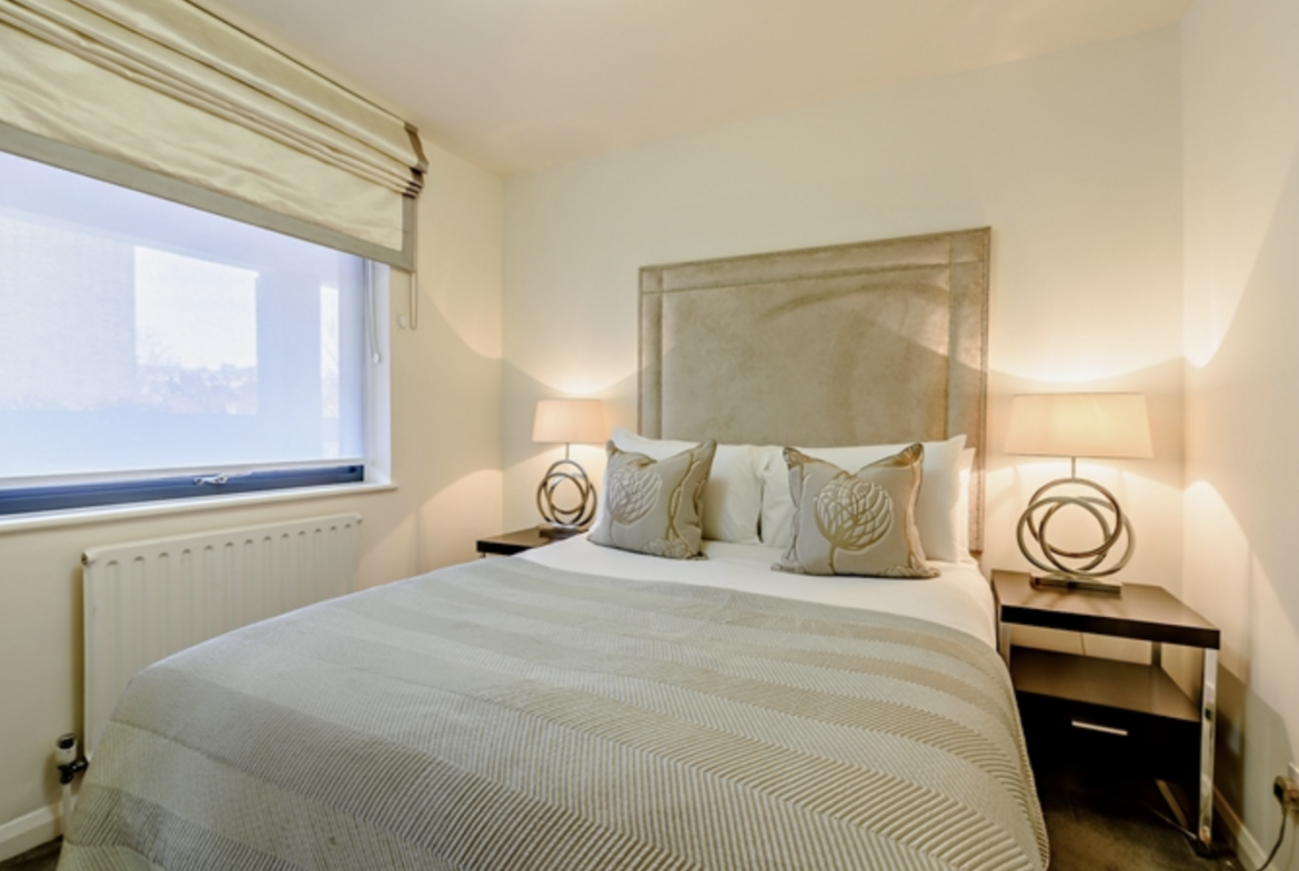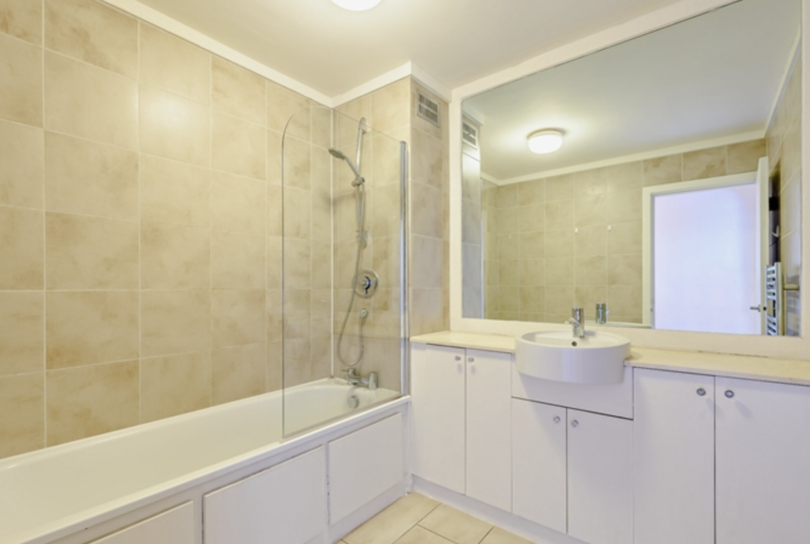 The apartment consists of large reception room and bright modern kitchen with fully integrated appliances. Large windows running along one side of the reception room give the room a fantastic sense of openness and space.
