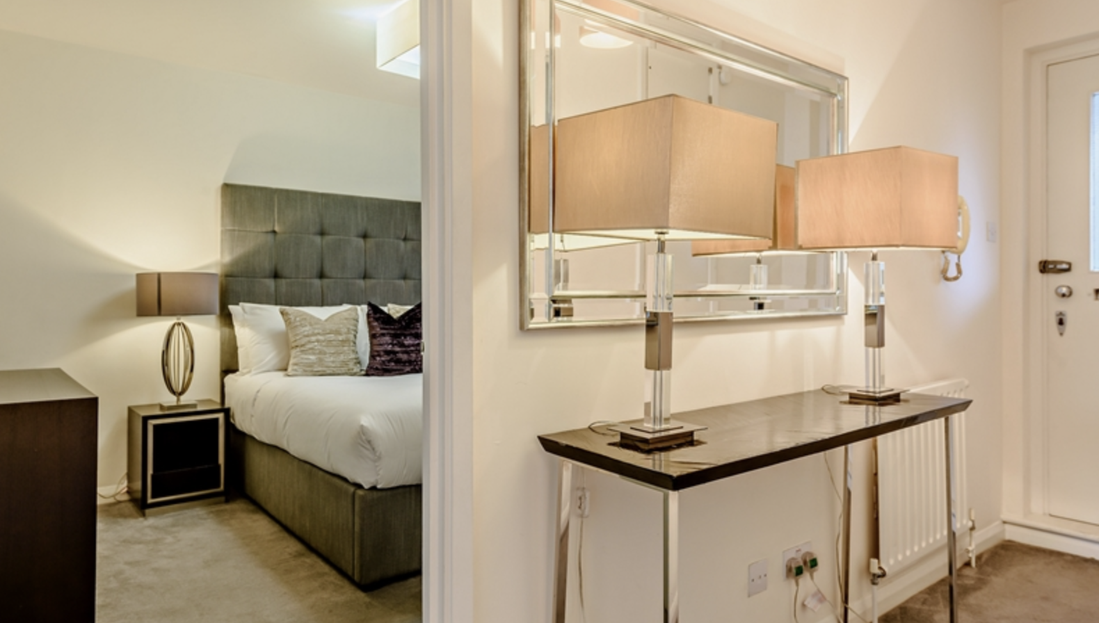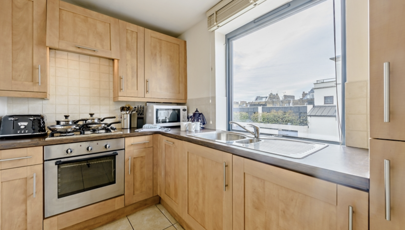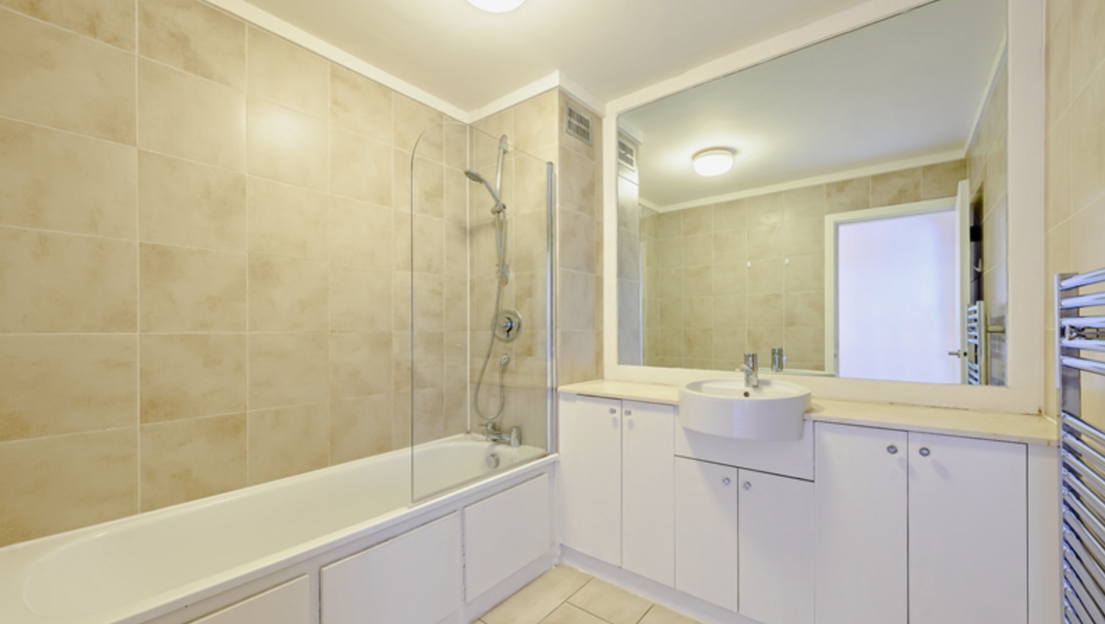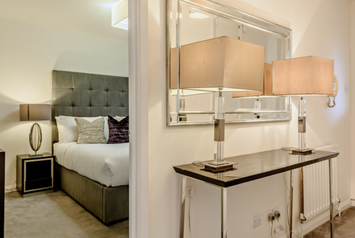 The apartment consists of large reception room and bright modern kitchen with fully integrated appliances. Large windows running along one side of the reception room give the room a fantastic sense of openness and space.
