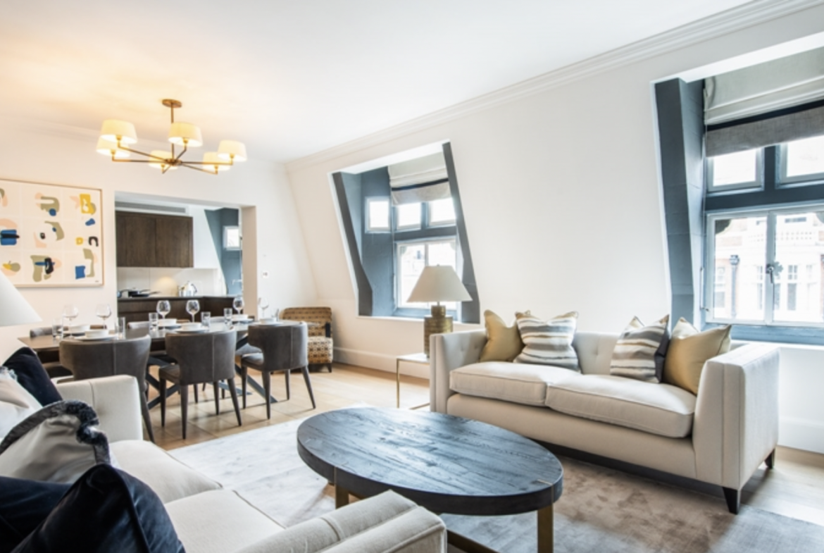 This spectacular, interior designed three-bedroom, north west facing Mayfair apartment, is located on famous Duke Street, just off Oxford Street.