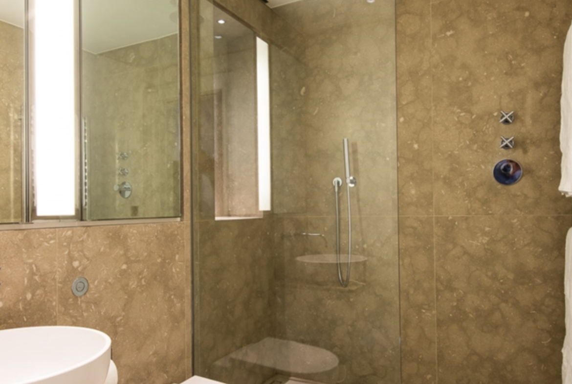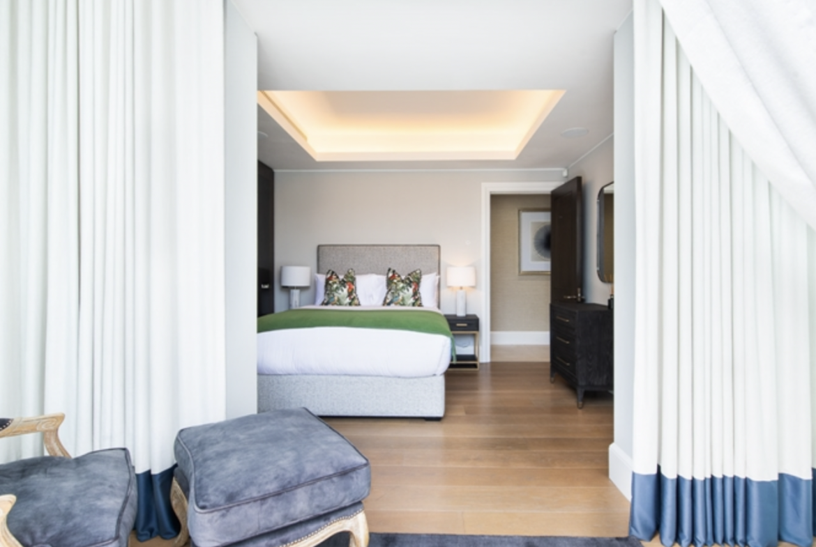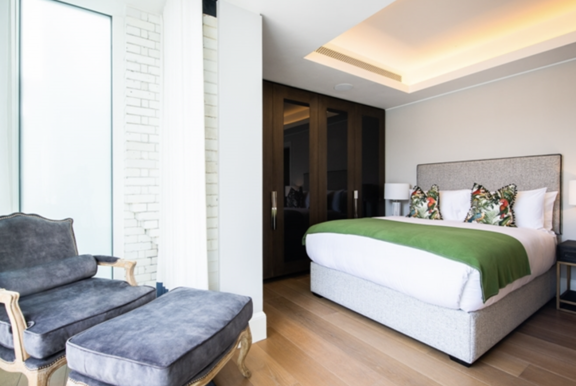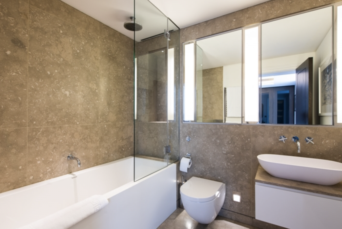 This second-floor luxury apartment has been finished to the highest of specifications using the finest materials and latest “smart home” technology. The apartment comprises an open-plan living area with a beautiful bespoke kitchen with integrated lighting, Gaggenau appliances along with natural oak flooring. The bathrooms are created out of Galina limestone and silver travertine which helps create a sensual ad relaxing atmosphere.