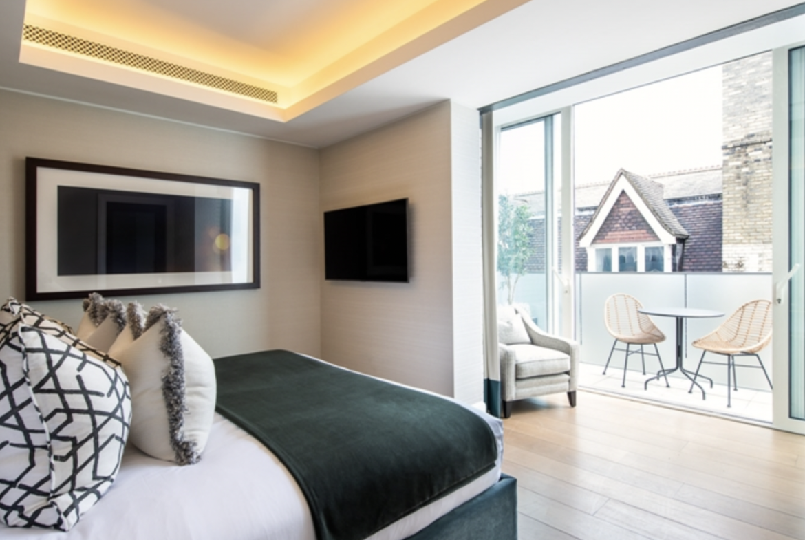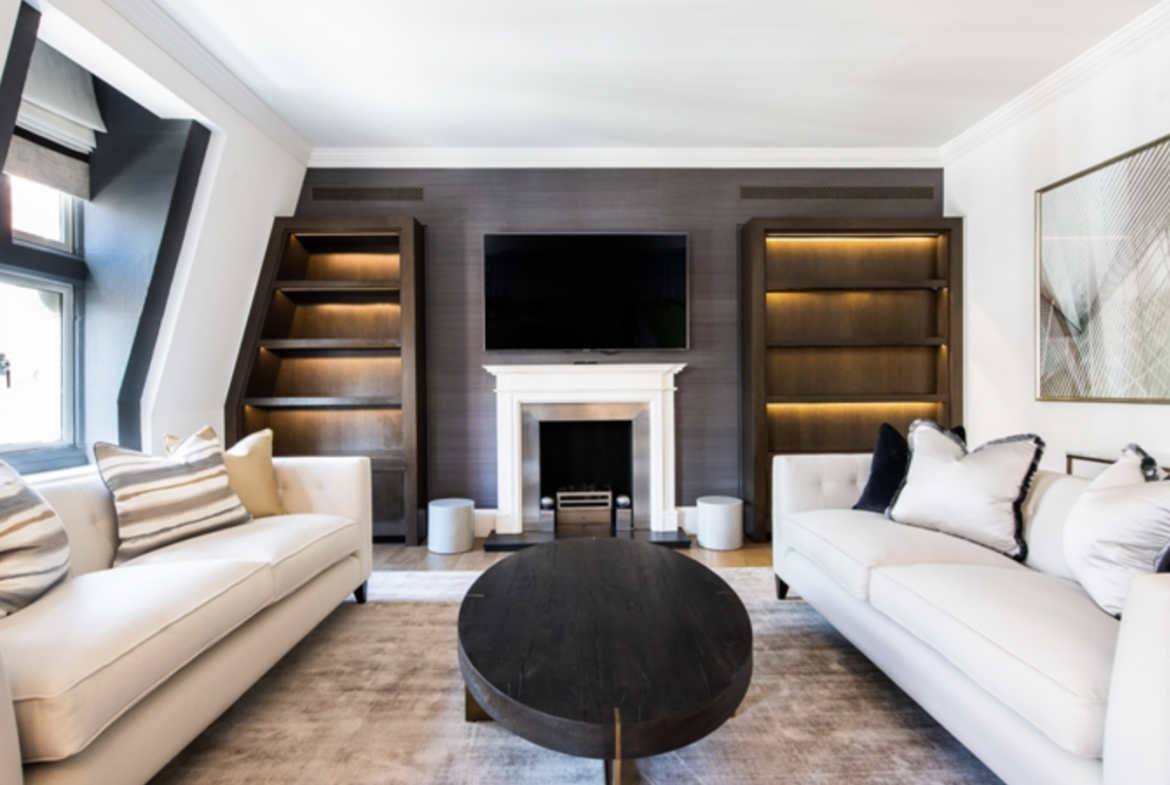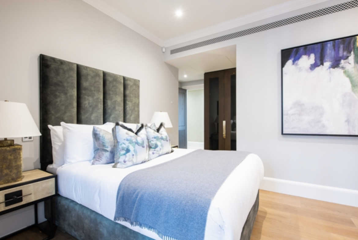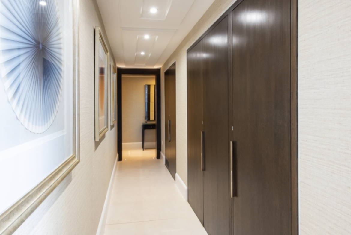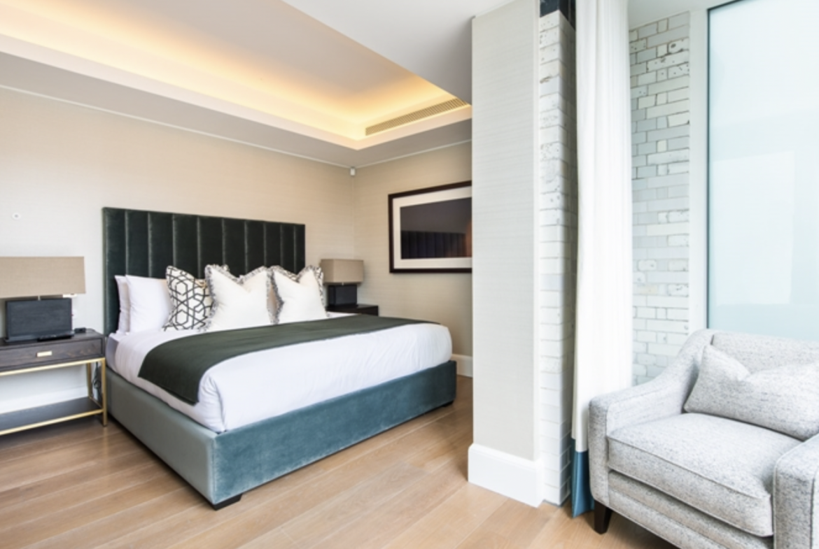 This second-floor luxury apartment has been finished to the highest of specifications using the finest materials and latest “smart home” technology. The apartment comprises an open-plan living area with a beautiful bespoke kitchen with integrated lighting, Gaggenau appliances along with natural oak flooring. The bathrooms are created out of Galina limestone and silver travertine which helps create a sensual ad relaxing atmosphere.