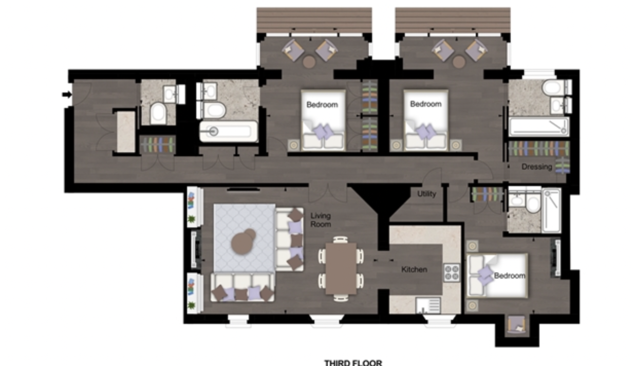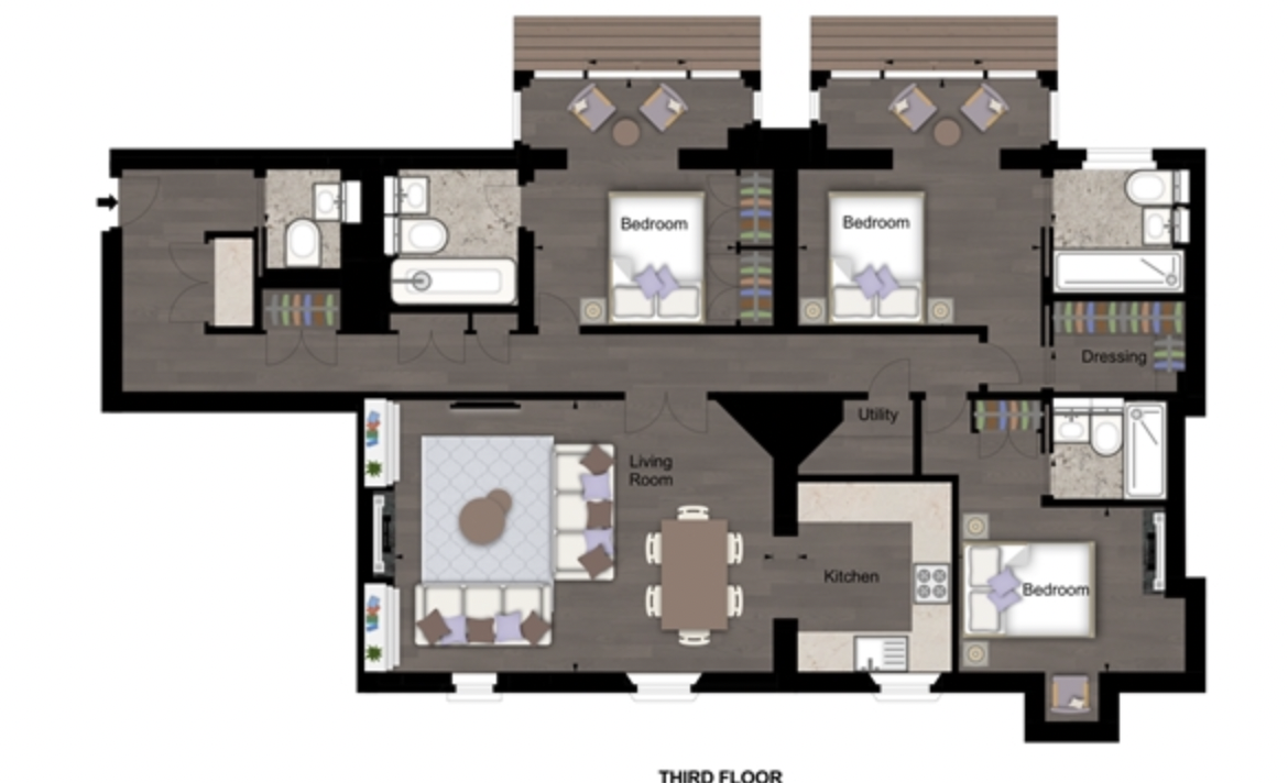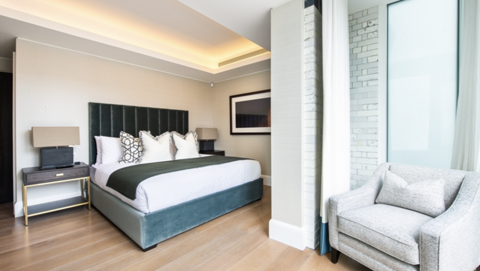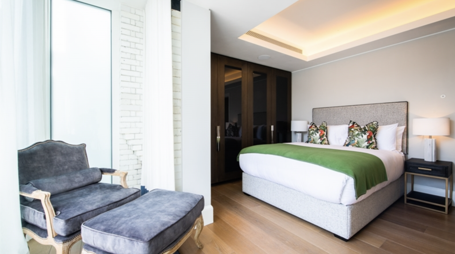 This second-floor luxury apartment has been finished to the highest of specifications using the finest materials and latest “smart home” technology. The apartment comprises an open-plan living area with a beautiful bespoke kitchen with integrated lighting, Gaggenau appliances along with natural oak flooring. The bathrooms are created out of Galina limestone and silver travertine which helps create a sensual ad relaxing atmosphere.