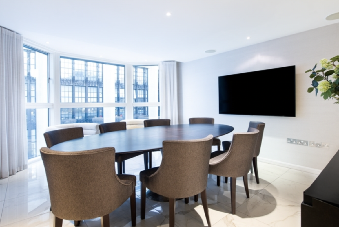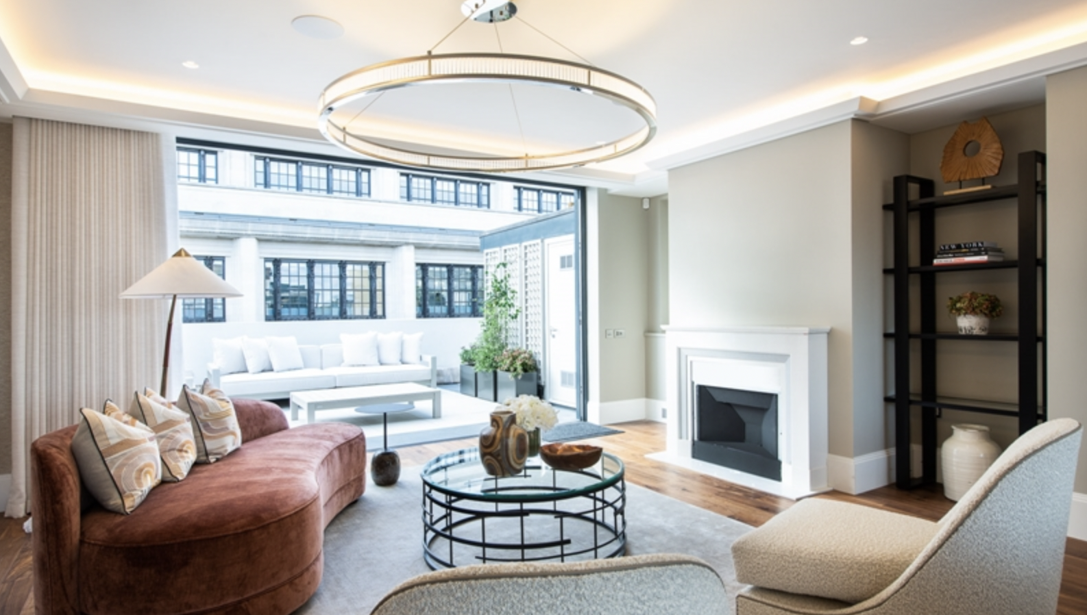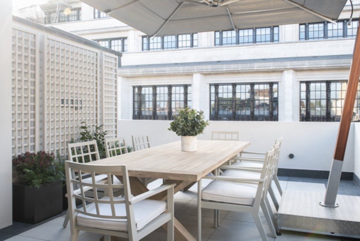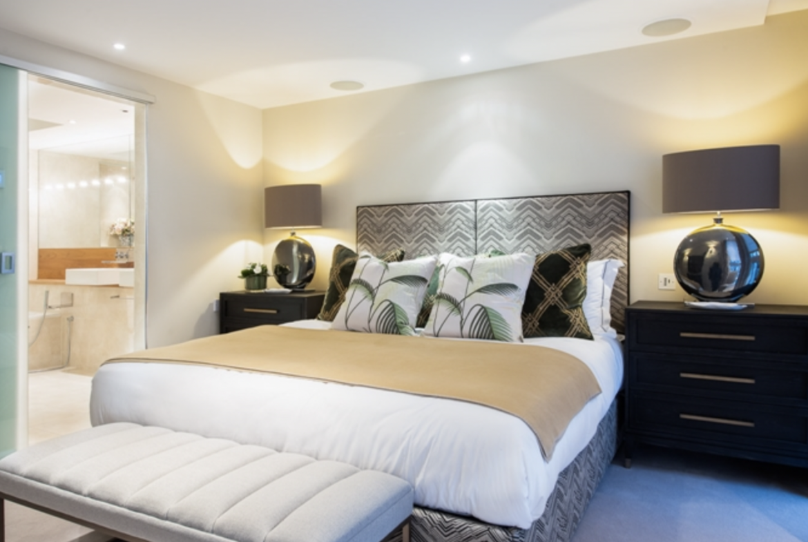 A stunning customized glass staircase offers uninterrupted double height views across London, which in turn leads you up into a unique entertainment and relaxation space offering several lavish areas as well as comfortable dining for 10 people. The open plan feel combines perfectly with two stunning outdoor seating areas that extends seamlessly through from the multiple Bi Folding doors.